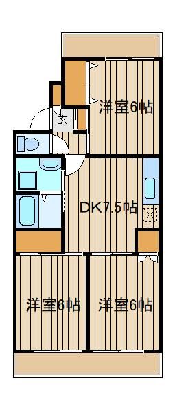 | 築年月 | 1986年1月 | 間取り | 3DK( 洋室6畳/洋室6畳/洋室6畳/DK7.5畳 ) | 専有面積 | 56m2 |