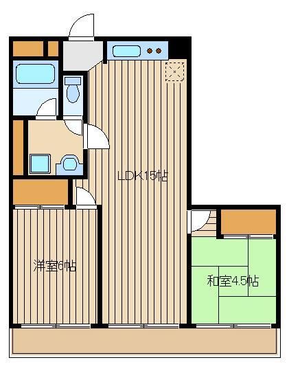 | 築年月 | 1979年11月 | 間取り | 2LDK( LDK15畳/洋室6畳/和室4.5畳 ) | 専有面積 | 54.64m2 |