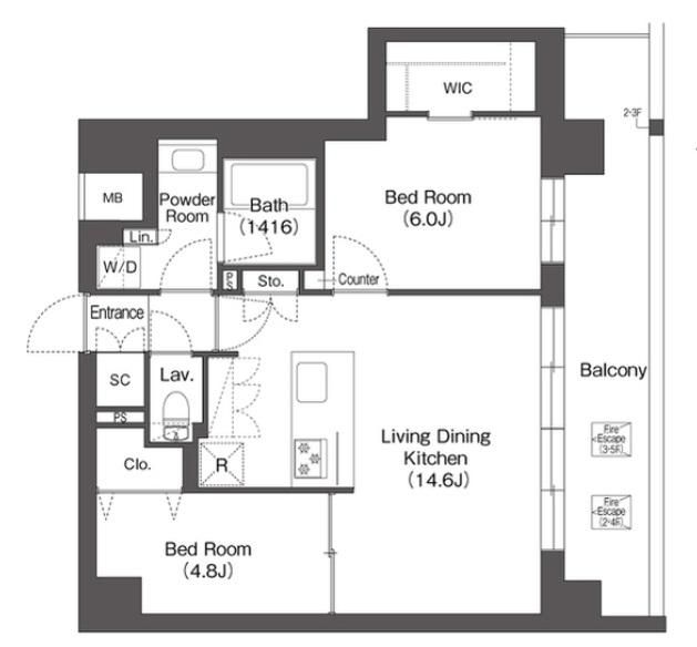 2LDK( LDK14.6畳/洋室6畳/洋室4.8畳 ) |