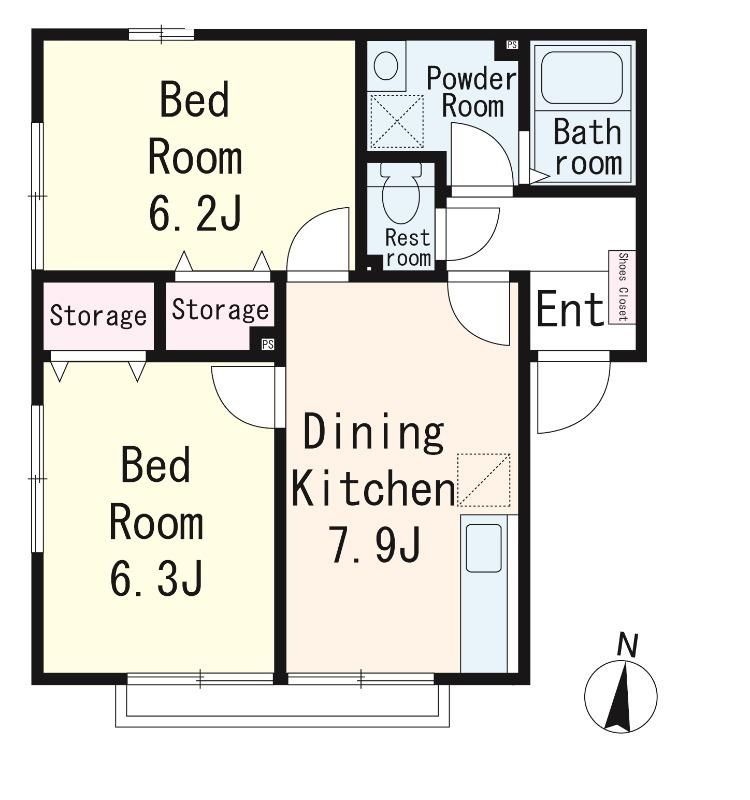 | 築年月 | 2004年2月 | 間取り | 2DK( DK7.9畳/洋室6.3畳/洋室6.2畳 ) | 専有面積 | 46.03m2 |
